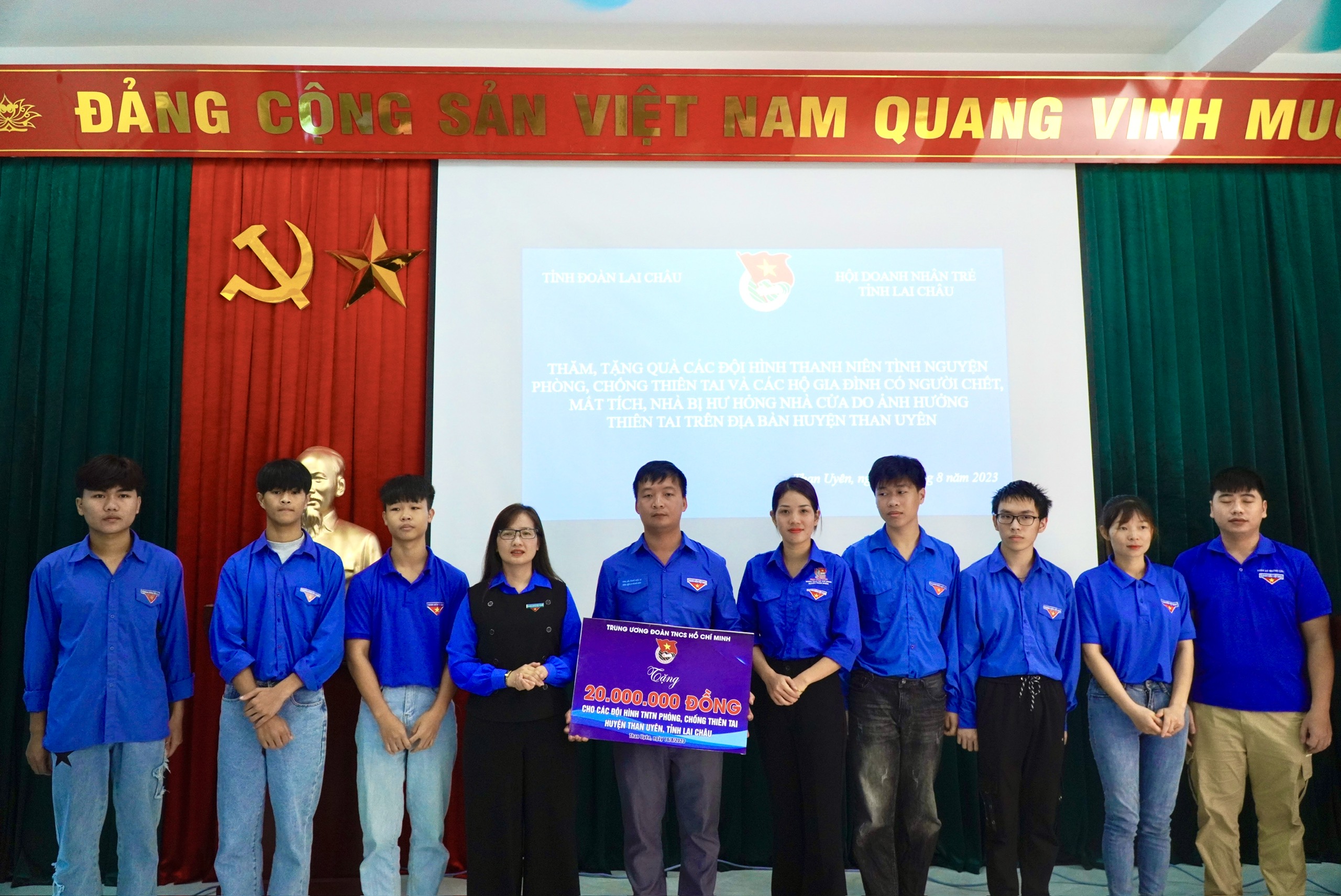 Tham gia thăm hỏi, tặng quà có đồng chí Vừ Thị Mai Dinh - Phó Bí thư Tỉnh đoàn; anh Phạm Văn Tuyền - Chủ tịch Hội Doanh nhân trẻ và các anh, chị doanh nhân hội viên. Tại đây, đoàn công tác đã trao 20.000.000 VNĐ cho các đội hình Thanh niên tình nguyện hỗ trợ phòng chống thiên tai, 04 suất quà cho 04 hộ gia đình có người thiệt mạng do mưa, lũ (mỗi suất 2.000.000 VNĐ); các suất quà gồm nhu yếu phẩm và 20.000.000 VNĐ cho 10 gia đình thiệt hại nặng nề về tài sản (nhà bị đổ sập hoàn toàn). Tổng nguồn lực đã trao trị giá 60.000.000 VNĐ.