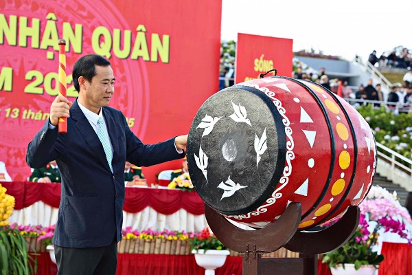 Đồng chí Nguyễn Thái Học, Quyền Bí thư Tỉnh uỷ nổi hồi trống mở hội giao quân