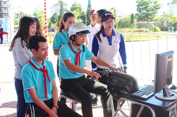 Tặng mũ bảo hiểm cho ĐVTN |