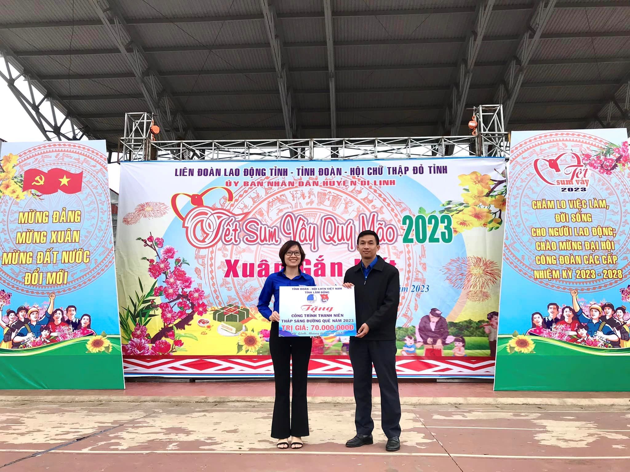 Dịp này, Tỉnh Đoàn đã trao tặng công trình thắp sáng đường quê trị giá 70 triệu đồng cho các thôn, tổ dân phố vùng đồng bào DTTS trên địa bàn huyện Di Linh; Liên đoàn Lao động tỉnh Lâm Đồng tổ chức trao tặng 03 căn nhà “Mái ấm Công đoàn” cho đoàn viên có hoàn cảnh khó khăn, mỗi căn trị giá 50 triệu đồng. Tổng trị giá chương trình lên tới gần 1 tỷ đồng.