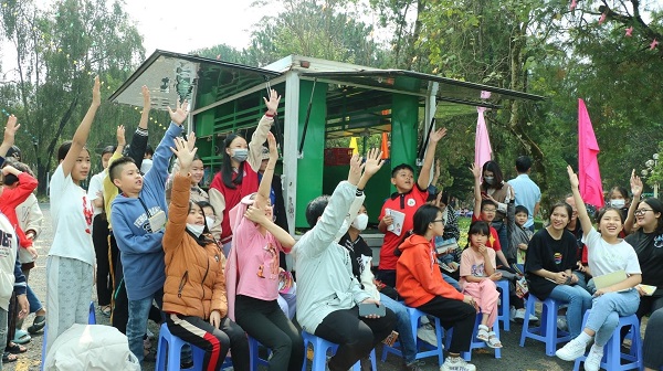 Với chủ đề “Mở trang sách - Mở tương lai”, các em học sinh, thiếu nhi không chỉ được thưởng thức các tiết mục văn nghệ do các bạn đội viên, học sinh lớp năng khiếu thể hiện mà còn được thỏa sức đọc sách, tìm hiểu kiến thức tại không gian Thư viện xanh; chơi trò chơi nhận thưởng tại xe sách lưu động của thư viện tỉnh.