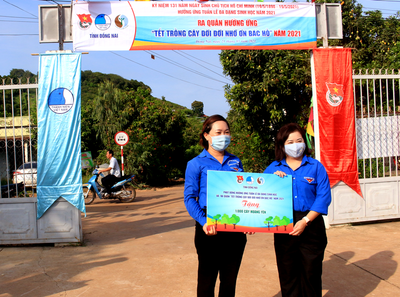 Tại Chương trình, đại diện Ban Thường vụ Tỉnh đoàn trao tặng 1.000 cây hoàng yến cho Huyện đoàn Định Quán, cùng với đó các đồng chí lãnh đạo đã thực hiện nghi thức trồng cây lưu niệm và khánh thành bảng tên công trình thanh niên trồng 1.000 cây hoàng yến trên địa bàn xã La Ngà, huyện Định Quán hưởng ứng Tết trồng cây và Chương trình "Vì một Việt Nam xanh" năm 2021.