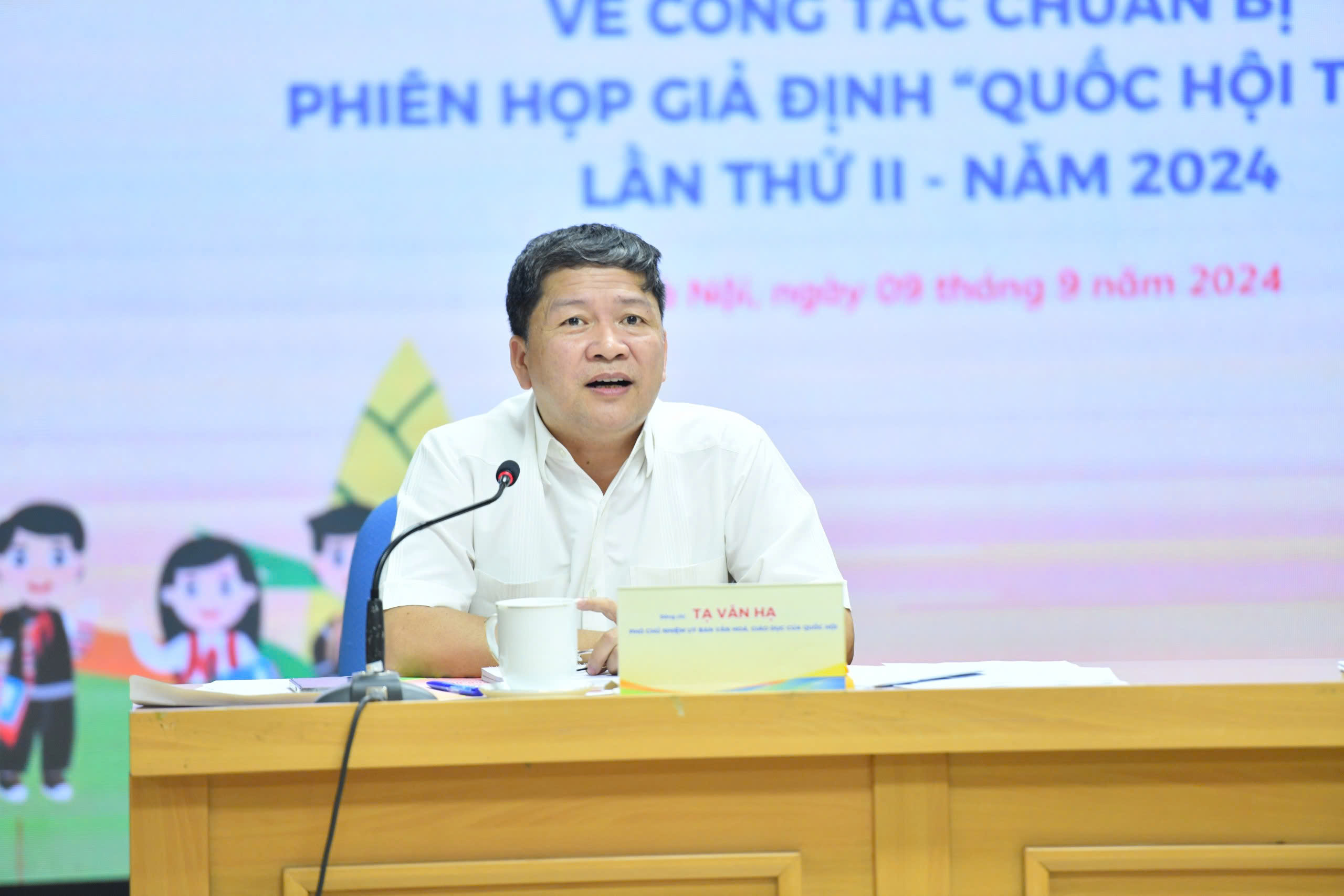 Phát biểu tại hội nghị, đồng chí Tạ Văn Hạ đánh giá cao công tác chuẩn bị cho Phiên họp giả định Quốc hội trẻ em và cho rằng hai chủ đề thảo luận đều là vấn đề mới, đáng báo động hiện nay. Đồng chí Tạ Văn Hạ mong muốn, từ những đề xuất, câu hỏi các em nêu ra sẽ đặt vấn đề về quản lý nhà nước, quản lý thị trường, quảng cáo… để có những chính sách hữu hiệu nhất bảo vệ các em trong môi trường học đường.