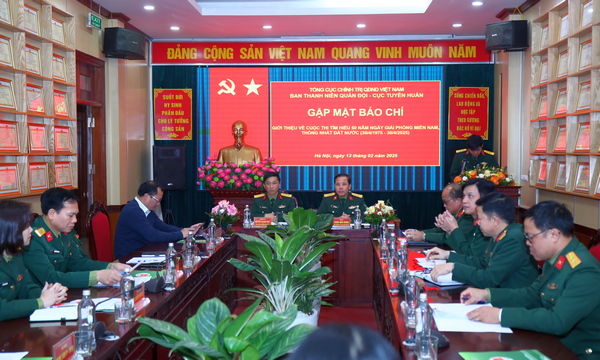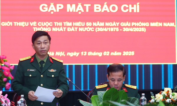 Sáng 13/2, tại Hà Nội, Ban Thanh niên Quân đội và Cục Tuyên huấn (Tổng cục Chính trị Quân đội nhân dân Việt Nam) tổ chức gặp mặt báo chí giới thiệu Cuộc thi tìm hiểu 50 năm Ngày giải phóng miền Nam, thống nhất đất nước (30/4/1975 - 30/4/2025).