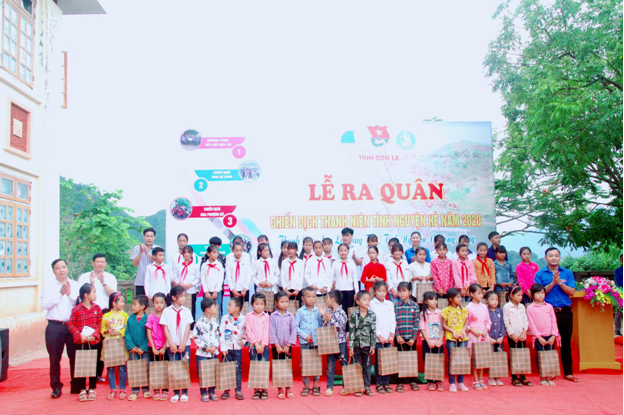 Trong khuôn khổ chương trình, Tỉnh đoàn đã tặng 20 suất học bổng, 400 ly sữa cho thiếu nhi có hoàn cảnh khó khăn của Trường Tiểu học - THCS Chiềng Ơn; tặng 01 sân chơi ngoài trời cho điểm trường Đồng Tâm, trường Mầm non Chiềng Ơn; Trung tâm hoạt động thanh thiếu nhi tỉnh tặng 1 bộ trống Đội cho Huyện Đoàn Quỳnh Nhai.