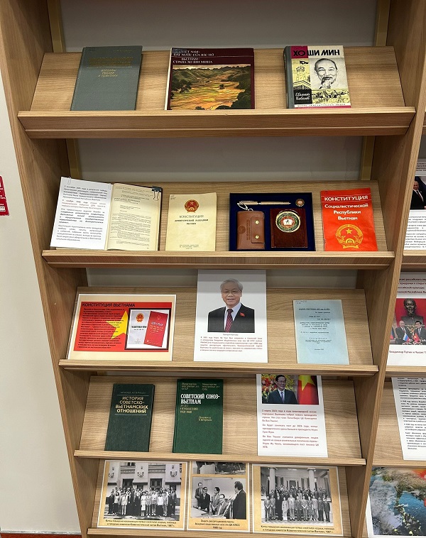 Bên cạnh đó, các đoàn viên thanh niên có cơ hội được tham quan Học viện Tổng thống Nga (Tiền thân là Học viện Khoa học Xã hội trực thuộc Trung ương Đảng CS Liên Xô) nơi đã đào tạo gần 1.000 cán bộ cao cấp của Đảng và nhà nước, đặc biệt, nhà trường đã trưng bày một góc về Việt Nam với nhiều tác phẩm nghiên cứu như: Tóm tắt luận án Tiến sĩ chuyên ngành Xây dựng Đảng của Tổng Bí thư Nguyễn Phú Trọng (nghiên cứu sinh niên khóa 1981-1983) với đề tài “Những hoạt động của Đảng Cộng sản Việt Nam nhằm củng cố mối quan hệ với quần chúng nhân dân trong giai đoạn hiện nay: so sánh với kinh nghiệm của Đảng Cộng sản Liên Xô”.