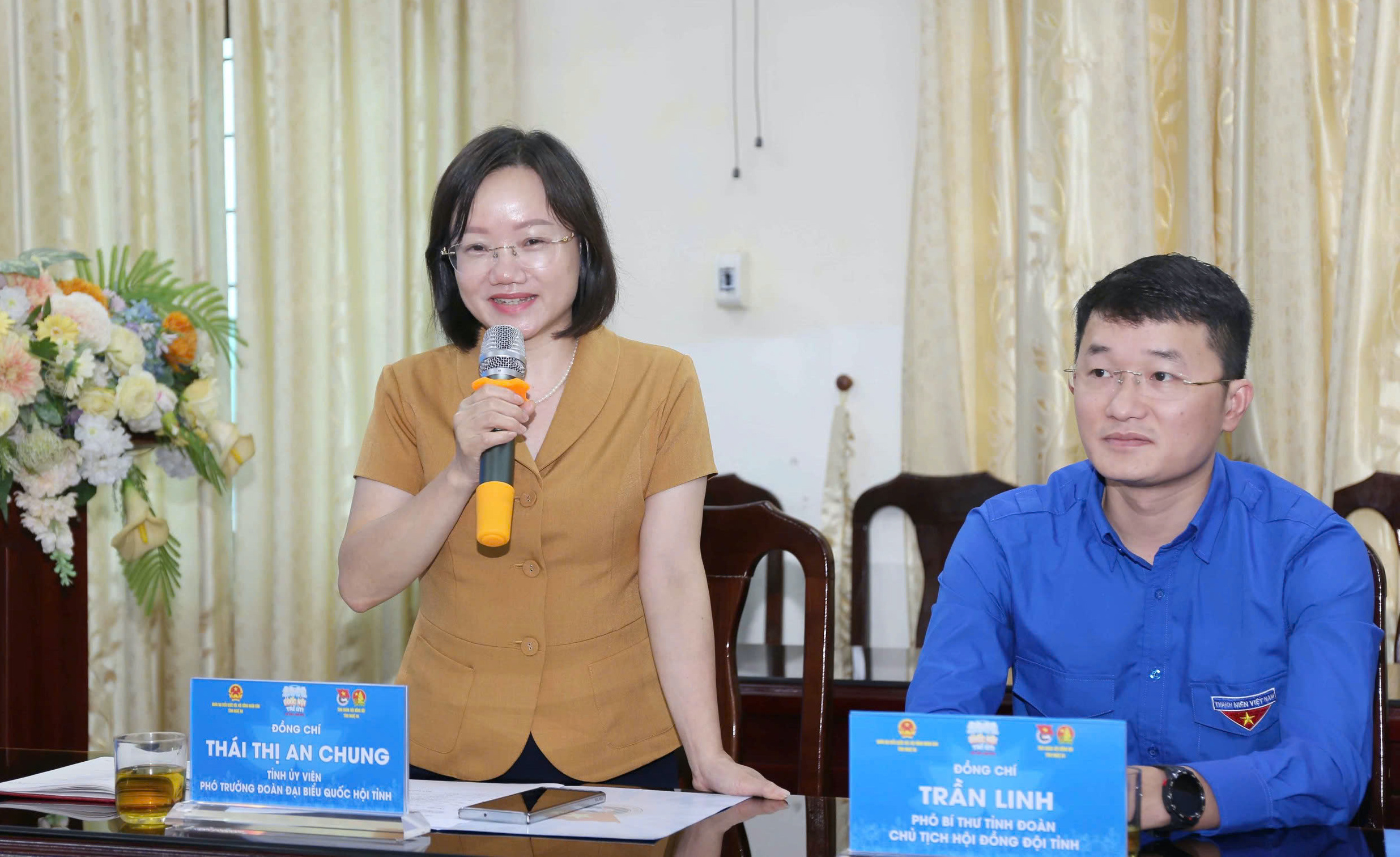 Tham dự chương trình có đồng chí Thái Thị An Chung, Ủy viên BCH Đảng bộ tỉnh, Phó Trưởng Đoàn đại biểu Quốc hội tỉnh; đồng chí Trần Linh, Phó Bí thư Tỉnh đoàn, Chủ tịch Hội Sinh viên, Chủ tịch Hội đồng Đội tỉnh; đại diện Văn phòng Đoàn ĐBQH và HĐND tỉnh cùng 06 đại biểu tham dự phiên họp giả định.