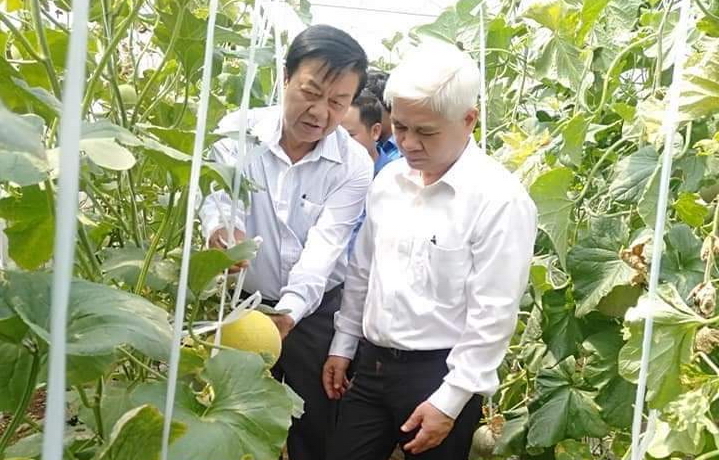 Bí thư Tỉnh ủyNguyễn Văn Lợi thăm mô hình trồng dưa lưới xã Lộc Hưng