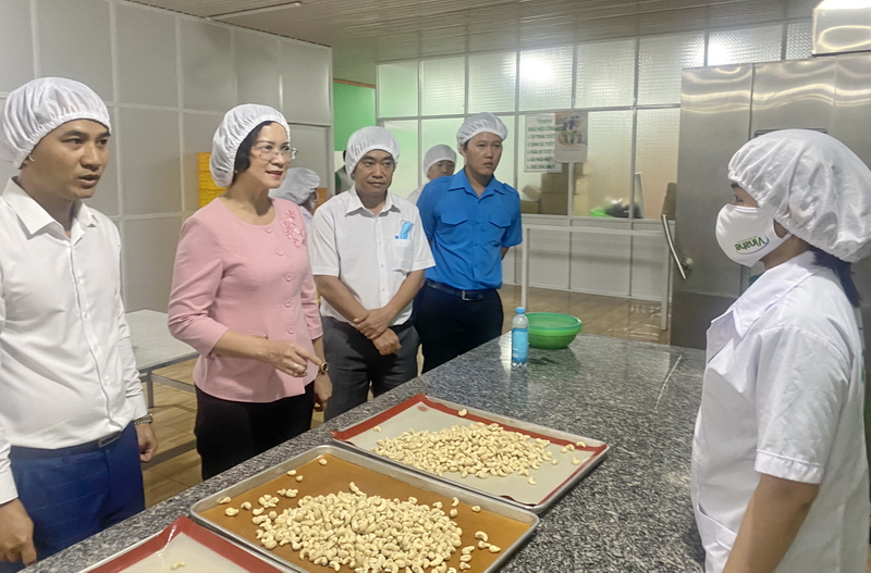 Phó Chủ tịch UBND tỉnh Trần Tuyết Minh tỉnh thăm cơ sở chế biến hạt điều Vinahe