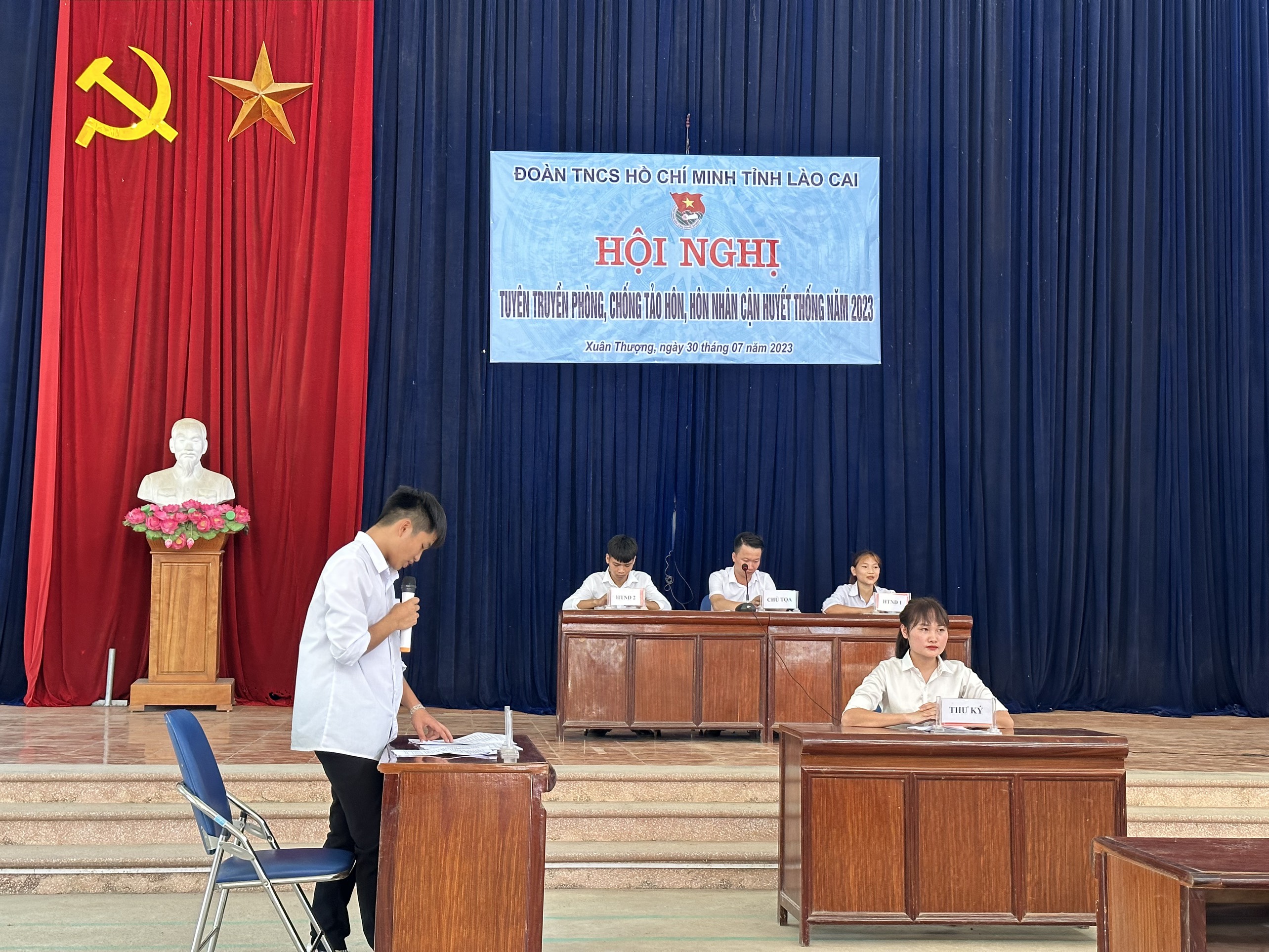 Đồng thời tại Hội nghị Ban tổ chức còn lồng ghép tuyên truyền qua các tiểu phẩm tình huống giả định vụ án xét xử đối với bị can thực hiện hành vi " Giao cấu với người từ đủ 13 tuổi đến dưới 16 tuổi ". Lồng ghép đặt câu hỏi nội dung liên quan, qua đó giúp người dân, đoàn viên, thanh niên tiếp thu kiến thức pháp luật hiệu quả. Đặc biệt tuyên truyền qua các tiểu phẩm ngắn, kịch sân khấu hóa phiên tòa giả định về phòng, chống tảo hôn, hôn nhân cận huyết thống.