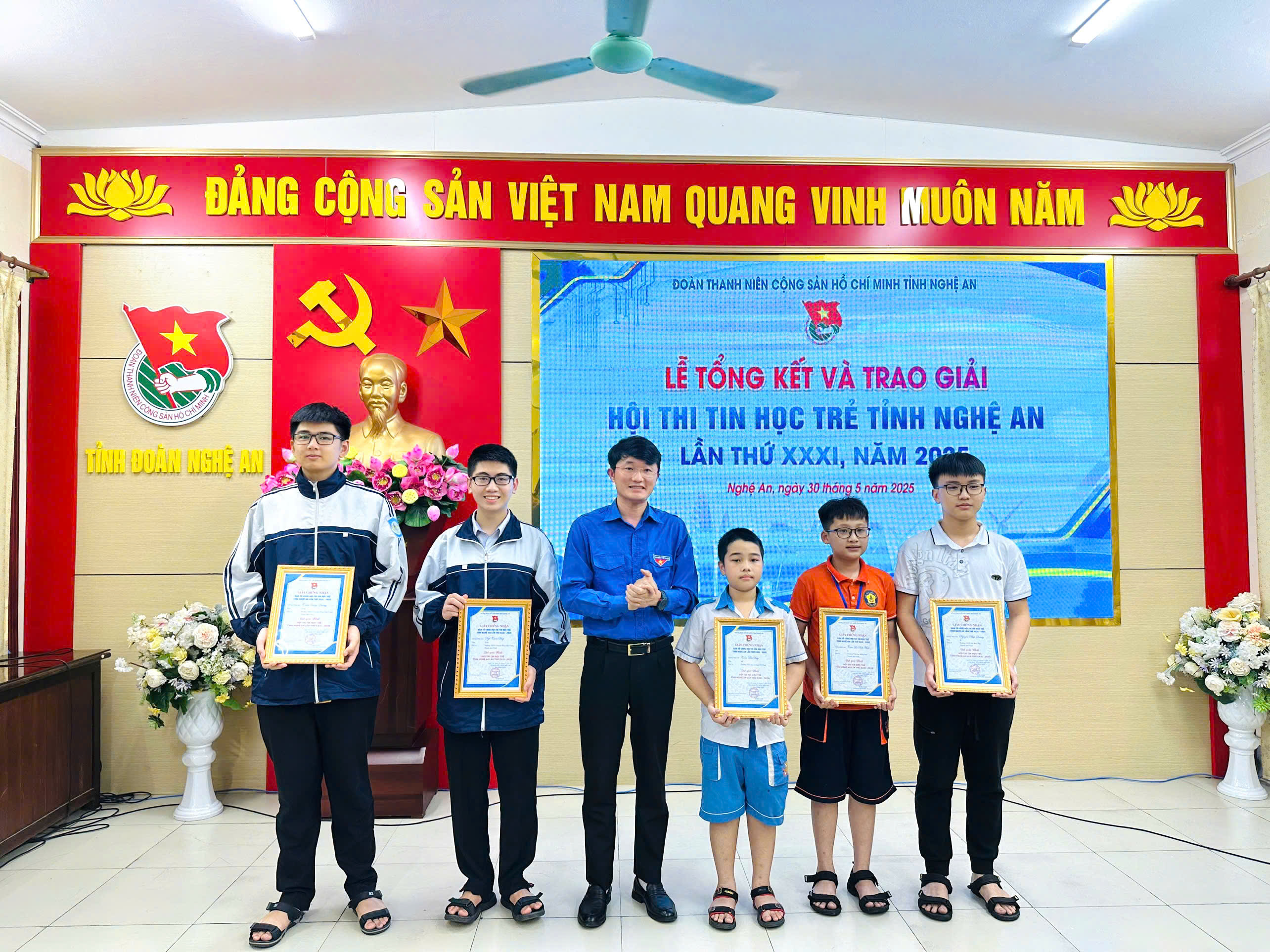 Tham dự buổi lễ có các đồng chí: Trần Linh, Phó Bí thư thường trực Tỉnh đoàn, Chủ tịch Hội Sinh viên, Chủ tịch Hội đồng Đội tỉnh; Đậu Quang Vinh, Phó Chủ tịch thường trực Liên hiệp các hội Khoa học và Kỹ thuật Nghệ An.
