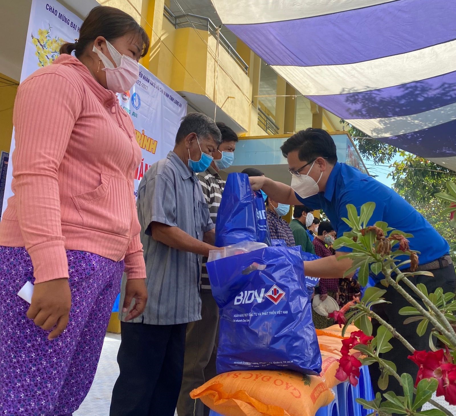 Phó Bí thư Tỉnh đoàn Trần Quốc Quân tặng quà người dân khó khăn