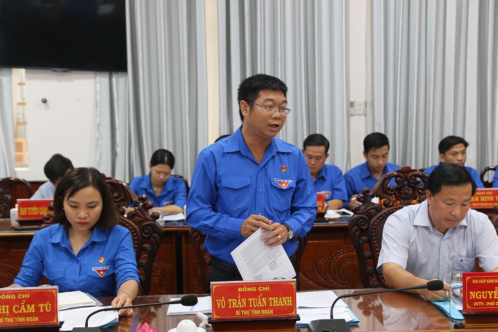 Tại buổi làm việc, thay mặt Ban Thường vụ Tỉnh đoàn, đồng chí Võ Trần Tuấn Thanh Bí thư Tỉnh đoàn báo cáo tóm tắt kết quả đạt được theo Kết luận số 707-KL/TU của Ban Thường vụ Tỉnh ủy tại buổi làm việc với Ban Thường vụ Tỉnh đoàn năm 2019, phương hướng nhiệm vụ năm 2020.