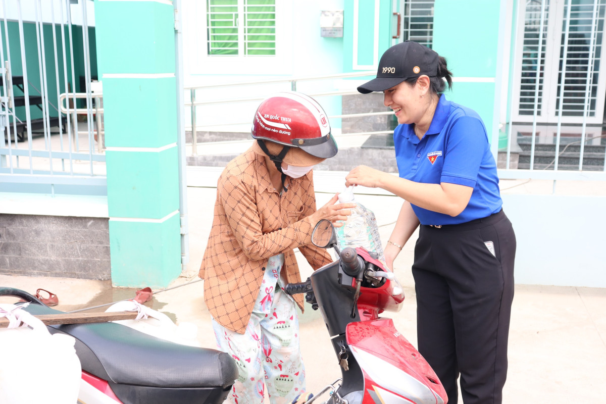 Đoàn viên, thanh niên trao tặng nước cho người dân