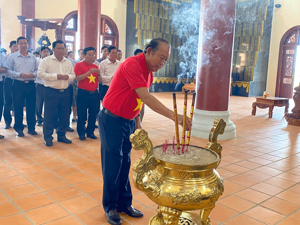 Đồng chí Trương Hòa Bình, nguyên Ủy viên Bộ Chính trị, nguyên Phó Thủ tướng Thường trực Chính phủ, Chủ tịch danh dự Chương trình Tự hào cờ Tổ quốc cùng đoàn công tác đến viếng Khu di tích lịch sử Quốc gia khu vực Đồn Long Khốt