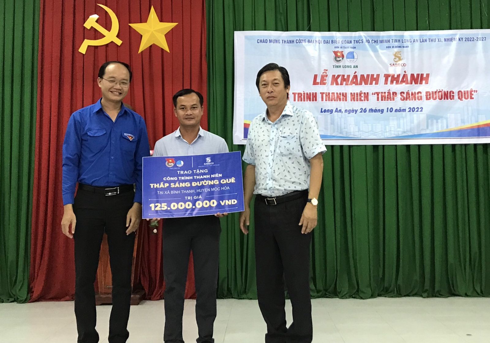 Công trình Thắp sáng đường quê gồm 35 trụ đèn năng lượng mặt trời được lắp đặt trên tuyến đường dài hơn 01 km. Hệ thống lắp theo tiêu chuẩn 3 trong 1 gồm đèn năng lượng mặt trời, cờ Tổ quốc và pano tuyên truyền. Trụ đèn năng lượng mặt trời được lắp đặt đúng quy cách, đảm bảo chất lượng và an toàn cho người dân khi lưu thông. Tổng giá trị công trình là 125 triệu đồng do Trung ương Đoàn, Tổng Công ty Cổ phần Bia – Rượu – Nước Giải khát Sài Gòn (SABECO) hỗ trợ. Đây là hoạt động rất có ý nghĩa, thiết thực, qua đó thể hiện tinh thần xung kích, trách nhiệm của tuổi trẻ trong việc chung tay xây dựng nông thôn mới tại địa phương.