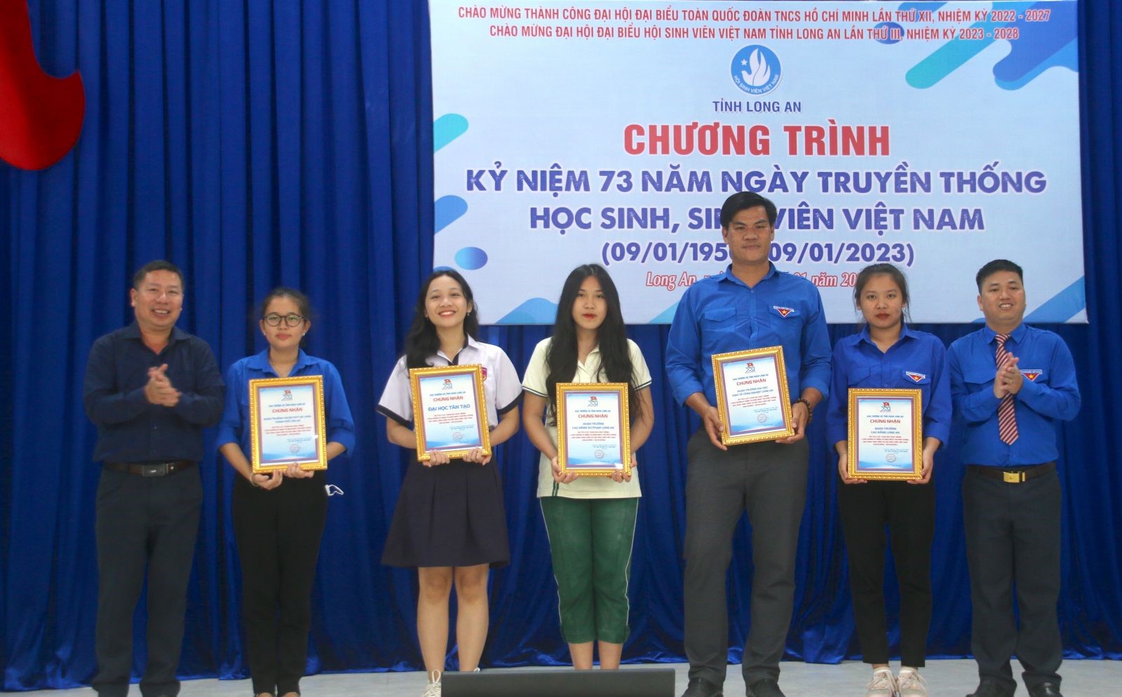 Trao chứng nhận cho các đơn vị tích cực tham gia hoạt động kỷ niệm 73 năm Ngày truyền thống học sinh, sinh viên và Hội Sinh viên Việt Nam