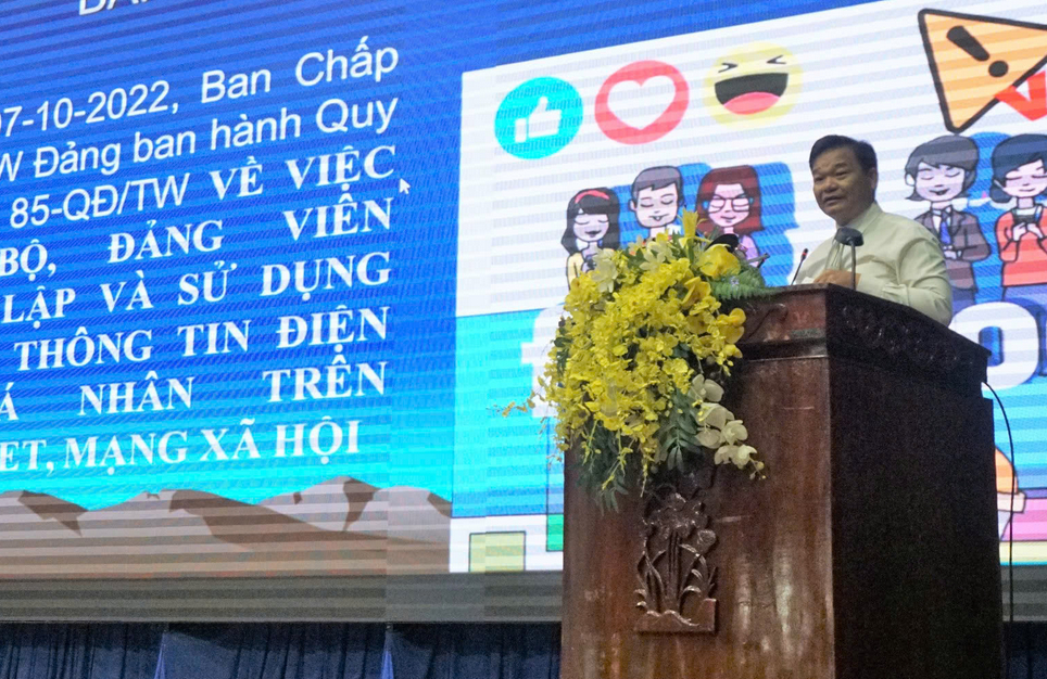 Các đại biểu được báo cáo viên là Trưởng phòng Thông tin, Tuyên truyền và Lý luận chính trị, Ban Tuyên giáo Tỉnh ủy - Hồ Văn Tùng thông tin về tình hình thời sự, chính trị trong và ngoài nước; nhấn mạnh về trách nhiệm, mục tiêu của cá nhân trong việc thiết lập và sử dụng mạng xã hội tích cực, góp phần nâng cao hiệu quả công tác tuyên truyền trên không gian mạng.