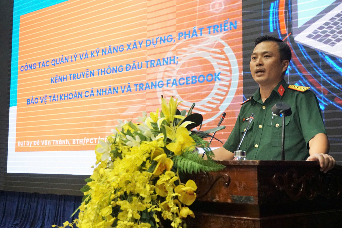 Bên cạnh đó, các cán bộ Đoàn còn được hướng dẫn thiết lập, sử dụng trang thông tin điện tử đúng cách, tuyên truyền các nội dung tích cực, đúng pháp luật. Đây là nội dung chuyên đề Công tác quản lý và kỹ năng xây dựng, phát triển kênh truyền thông đấu tranh; bảo vệ tài khoản cá nhân và trang Facebook do Đại úy Đỗ Văn Thành - Trợ lý Tuyên huấn Phòng Chính trị, Bộ Chỉ huy Quân sự tỉnh hướng dẫn.