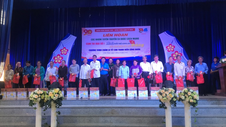 Nhân dịp này, Ban Thường vụ Tỉnh đoàn đã trao tặng 130 phần quà tết cho học sinh, thanh niên công nhân và các gia đình chính sách trên địa bàn huyện Cần Giuộc và Tân Hưng.