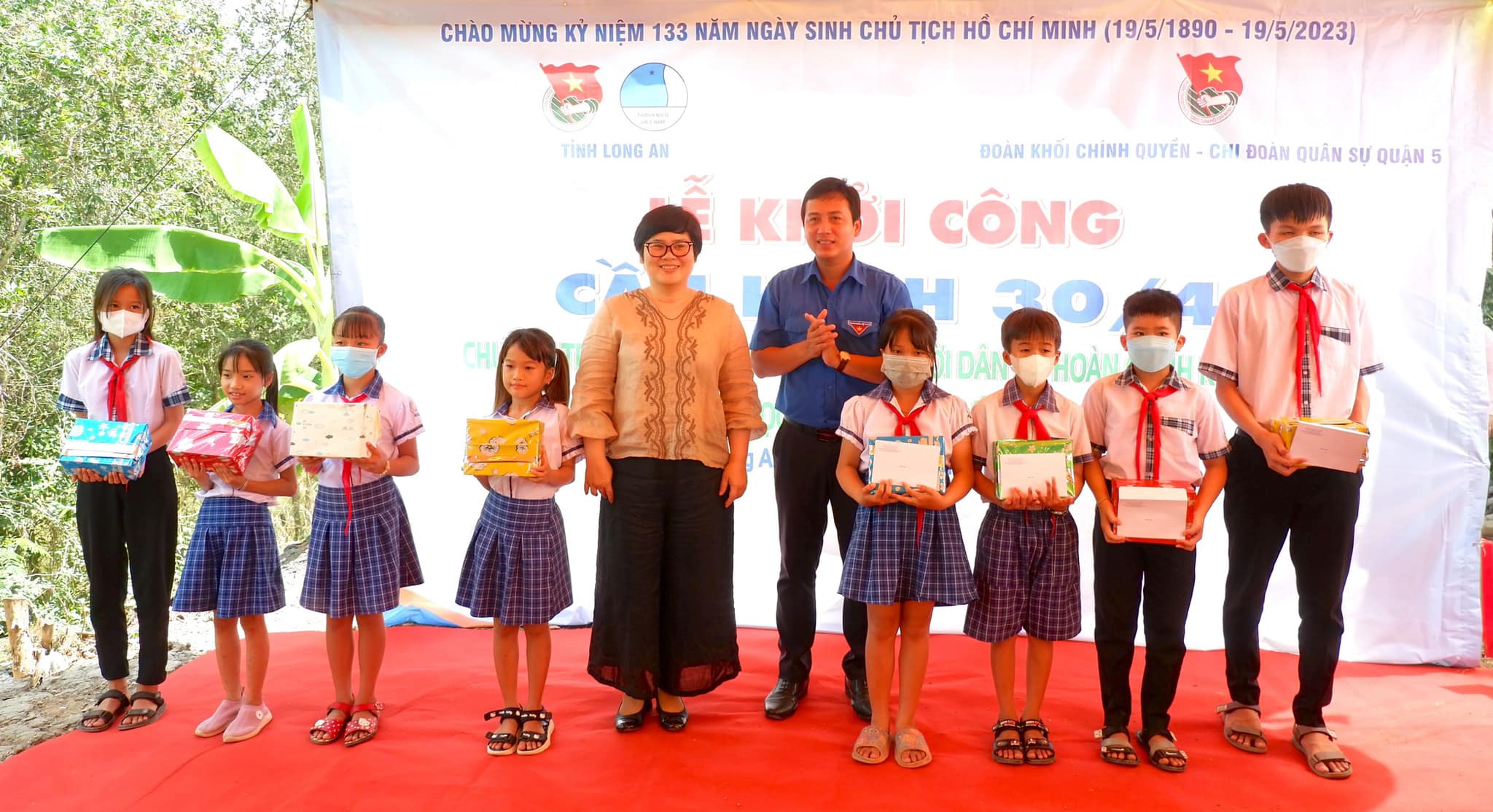 Cùng với việc khởi công Cầu kênh 30/4, Tỉnh Đoàn Long An phối hợp với Đoàn Khối chính quyền và Đoàn Quân sự Quận 5 (Thành phố Hồ Chí Minh) tổ chức trao tặng quà cho 50 người dân có hoàn cảnh khó khăn và 50 học sinh nghèo hiếu học với tổng trị giá 50 triệu đồng; Đoàn thanh niên Bệnh viện ĐH Y dược TP.HCM tổ chức khám bệnh, phát thuốc miễn phí và trao tặng 300 phần quà cho người dân có hoàn cảnh khó khăn trên địa bàn H.Tân Hưng tổng trị giá 80 triệu đồng./.