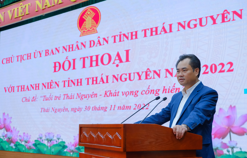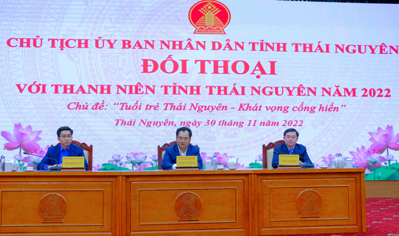Với chủ đề “Tuổi trẻ Thái Nguyên - Khát vọng cống hiến”, cuộc đối thoại giữa đồng chí Chủ tịch UBND tỉnh với thanh niên diễn ra trong không khí dân chủ, sôi nổi và cởi mở. Các đoàn viên thanh niên bày tỏ tâm tư, nguyện vọng và nêu nhiều ý, kiến nghị đồng chí Chủ tịch UBND tỉnh, liên quan đến chủ trương, chính sách phát triển nguồn nhân lực chất lượng cao; cơ hội nghề nghiệp, việc làm trong các khu công nghiệp của tỉnh đối với sinh viên sau khi tốt nghiệp; định hướng chiến lược để tạo việc làm bền vững cho thanh niên; giải pháp tháo gỡ khó khăn về vốn, đặc biệt là thanh niên nông thôn khởi nghiệp; giải pháp nâng cao chất lượng đào tạo, bồi dưỡng chuyên môn, kỹ năng cho thanh niên trong chuyển đổi số; chính sách thu hút nguồn nhân lực chất lượng cao từ đoàn viên, thanh niên là sinh viên ngành Y mới tốt nghiệp vào làm việc tại các cơ sở y tế trên địa bàn tỉnh; vấn nạn bạo lực học đường…