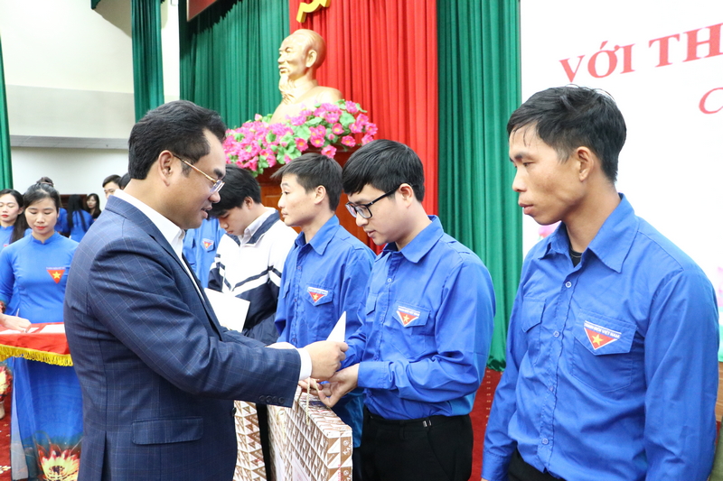 Nhân dịp này, để khích lệ, động viên các đoàn viên thanh niên có tinh thần vượt khó vươn lên, đồng chí Chủ tịch UBND tỉnh trao tặng 20 suất quà cho 20 đoàn viên thanh niên là học sinh, sinh viên, công nhân người dân tộc thiểu số có hoàn cảnh đặc biệt khó khăn.