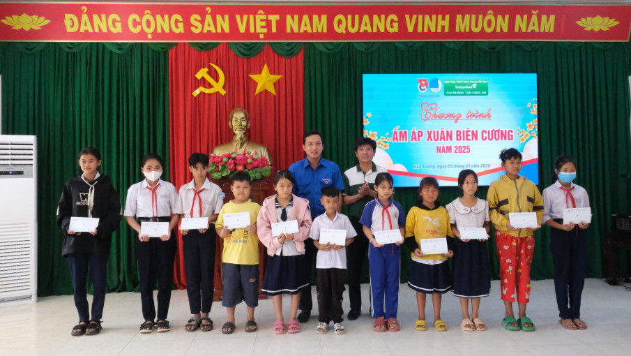 Trong đó, Ngân hàng Thương mại Cổ phần Ngoại thương Việt Nam - Chi nhánh Tân Long An trao tặng 70 suất quà tết cho gia đình chính sách, học sinh có hoàn cảnh khó khăn tại xã Bình Thạnh, huyện Mộc Hóa và thị xã Kiến Tường. Mỗi phần quà trị giá 500.000 đồng.