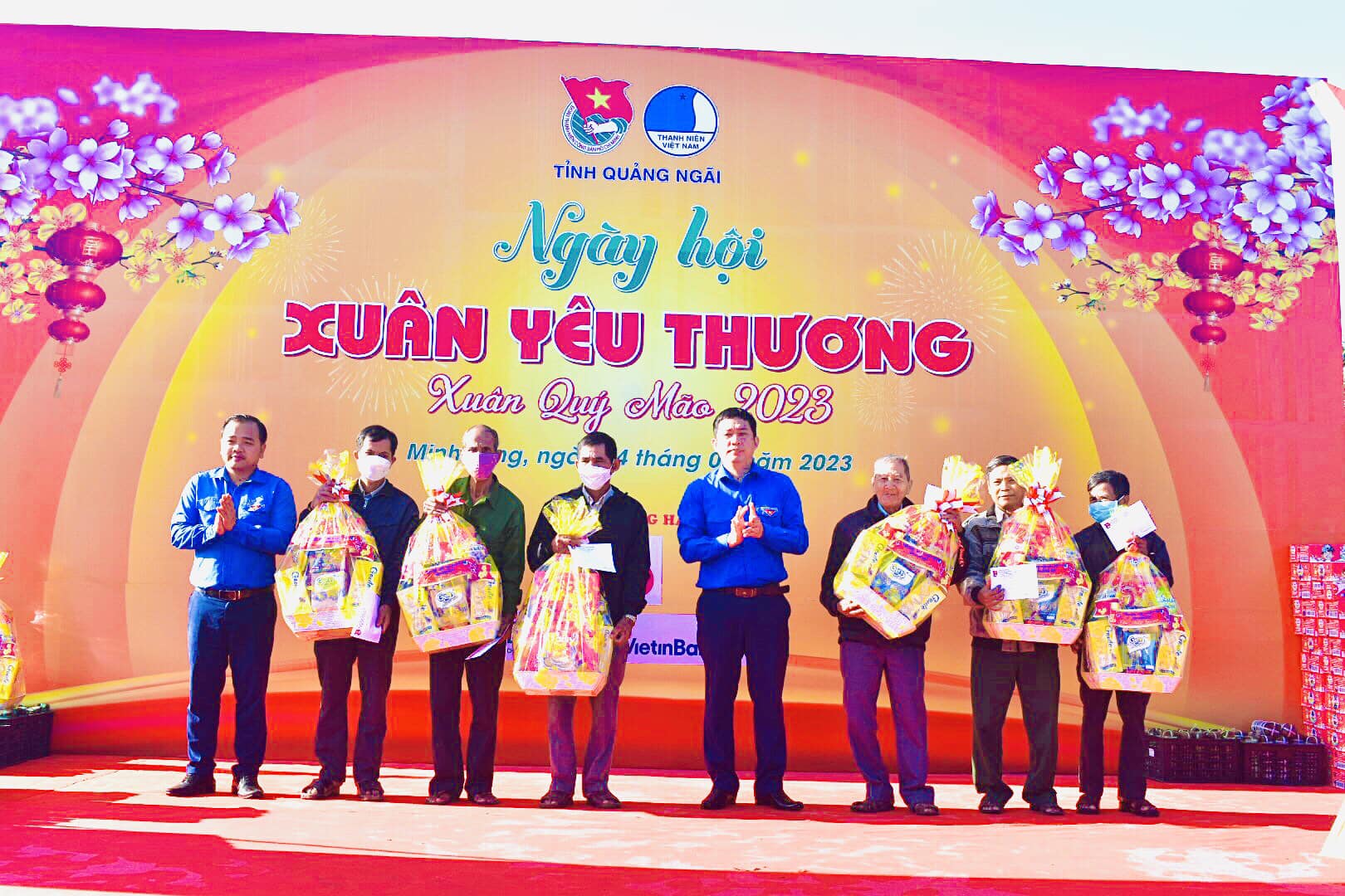 Chương trình “Xuân yêu thương” năm 2023, Tỉnh đoàn Quảng Ngãi cùng với các đơn vị tài trợ phối hợp tổ chức nhiều công trình, phần việc thanh niên, huy động sức trẻ chung tay thực hiện tốt các nhiệm vụ an sinh xã hội trên địa bàn huyện Minh Long, cụ thể: Khánh thành tuyến đường điện năng lượng mặt trời, Khởi công xây dựng Nhà nhân ái, Khởi công Khu vui chơi cho em, Tập huấn ứng dụng Công nghệ sinh học trong bảo vệ môi trường, tặng sữa cho học sinh, thăm, tặng quà cho già làng, trưởng bản; tổ chức Lễ hội mùa xuân thông qua các trò chơi dân gian, làm bánh chưng, bánh Tét, mứt Tết với tổng kinh phí hoạt động là gần 500 triệu đồng.