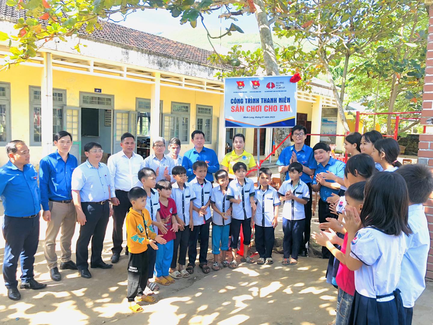 Khánh thành sân chơi cho em tại Trường Tiểu học Long Mai, điểm thôn Kỳ Hát, xã Long Mai, huyện Minh Long.