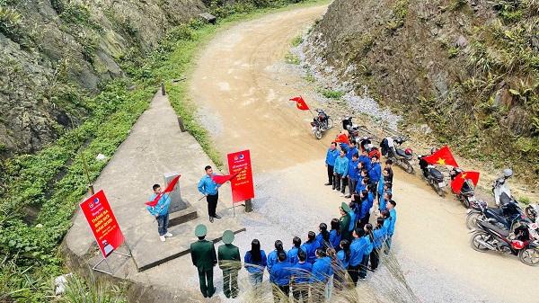 Lễ chào cờ tại cột mốc số 443 tại Cao Vều xã biên giới Phúc Sơn. Đây là một trong những hoạt động thiêng liêng, ý nghĩa thuộc chương trình “Tháng Ba biên giới” chào mừng 94 năm Ngày thành lập Đoàn TNCS Hồ Chí Minh (26-3-1931/26-3-2025) do tuổi trẻ Anh Sơn tổ chức.