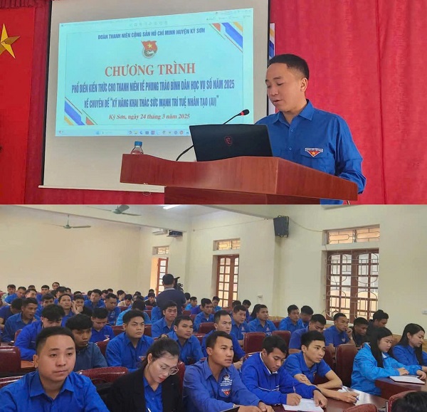 Với phương châm “Mỗi đoàn viên là một tuyên truyền viên” cho phong trào “Bình dân học vụ số”, Huyện đoàn Kỳ Sơn đã tổ chức chương trình tổ chức phổ biến chuyên đề “Kỹ năng khai thác sức mạnh trí tuệ nhân tạo (AI)” với sự tham gia của hơn 100 cán bộ Đoàn, đoàn viên thanh niên trên địa bàn
