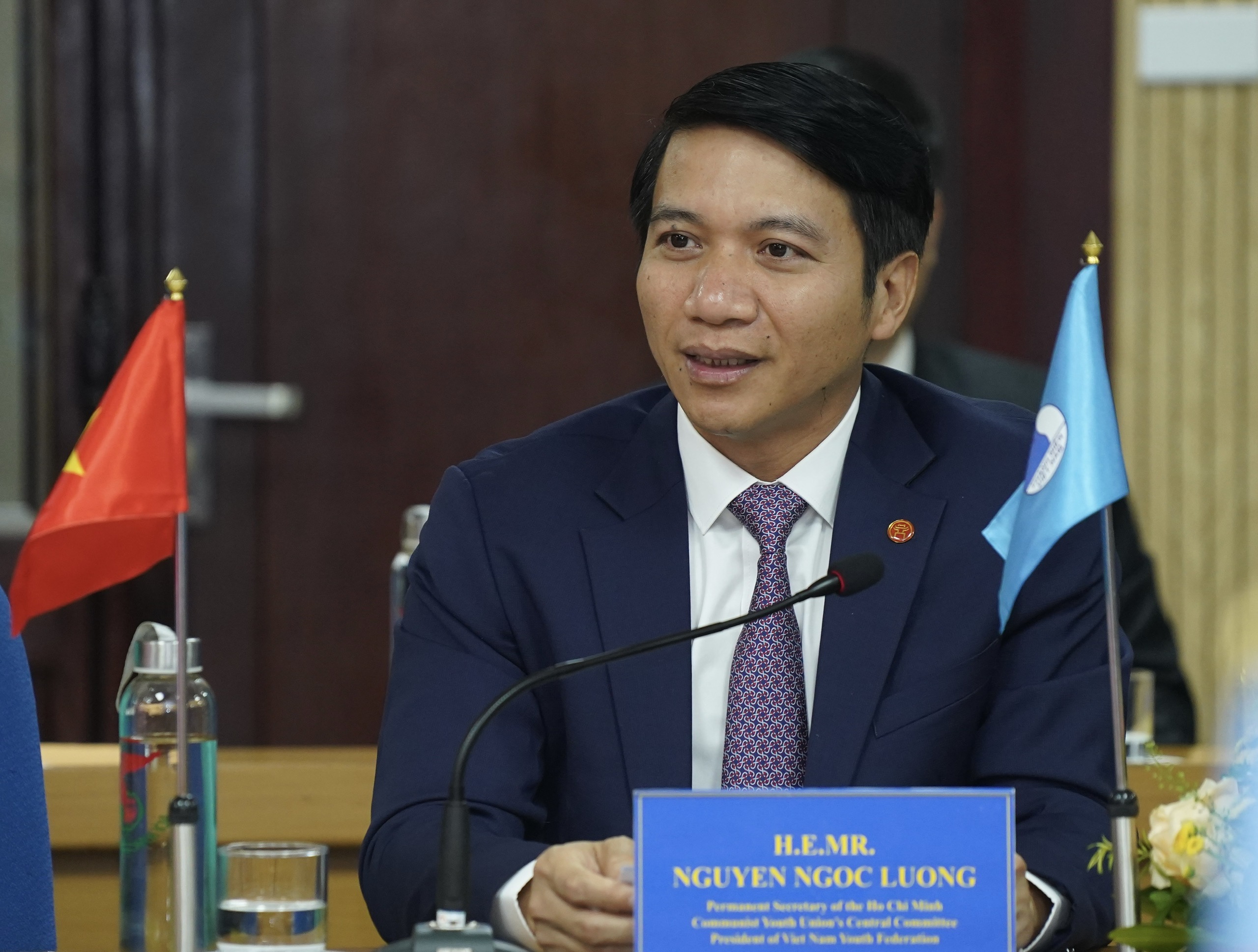 Anh Nguyễn Ngọc Lương bày tỏ vui mừng chào đón chào đón đoàn đại biểu cấp cao Hội Liên hiệp Thanh niên Campuchia sang thăm và làm việc tại Việt Nam vào đúng vào dịp hai nước long trọng kỷ niệm 55 năm thiết lập quan hệ ngoại giao và kỷ niệm 45 năm con đường tiến tới đánh đổ chế độ diệt chủng Pol Pot của Thủ tướng Hun Sen.