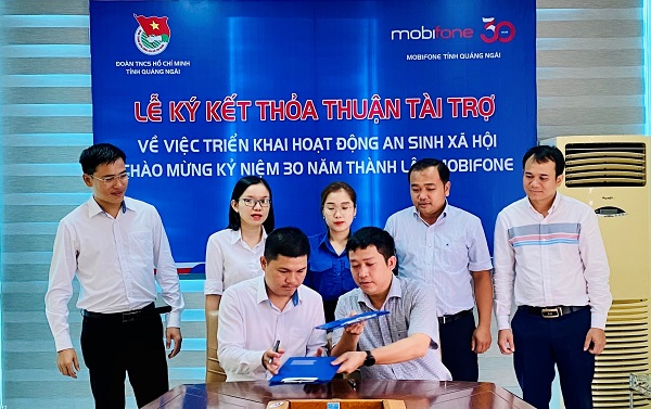 Dự lễ ký kết có ông Trần Đức Trọng, Giám đốc và ông Bùi Minh Dũng, Phó Giám đốc Mobifone tỉnh Quảng Ngãi; ông Cao Lê Tùng Nghĩa, Bí thư và ông Lê Văn Vin, Phó Bí thư Thường trực Tỉnh đoàn Quảng Ngãi.