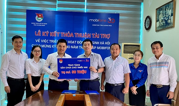 Theo đó, Mobifone Quảng Ngãi tài trợ kinh phí 50 triệu đồng để Ban chấp hành Đoàn Thanh niên tỉnh tổ chức xây dựng khu vui chơi cho thiếu nhi tại Trường Mầm non Trà Thanh (tổ 4, thôn Vuông, xã Trà Thanh, huyện Trà Bồng).