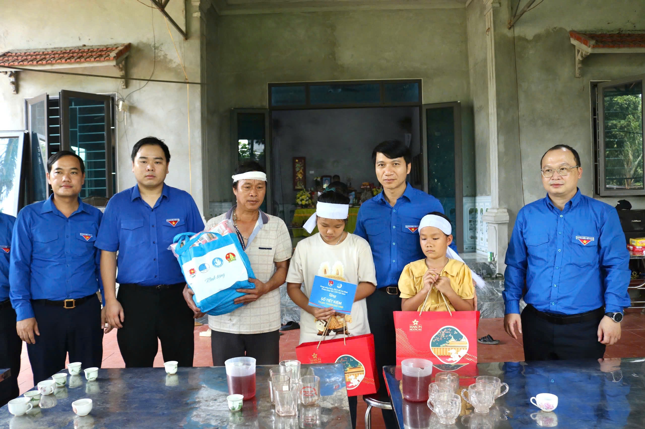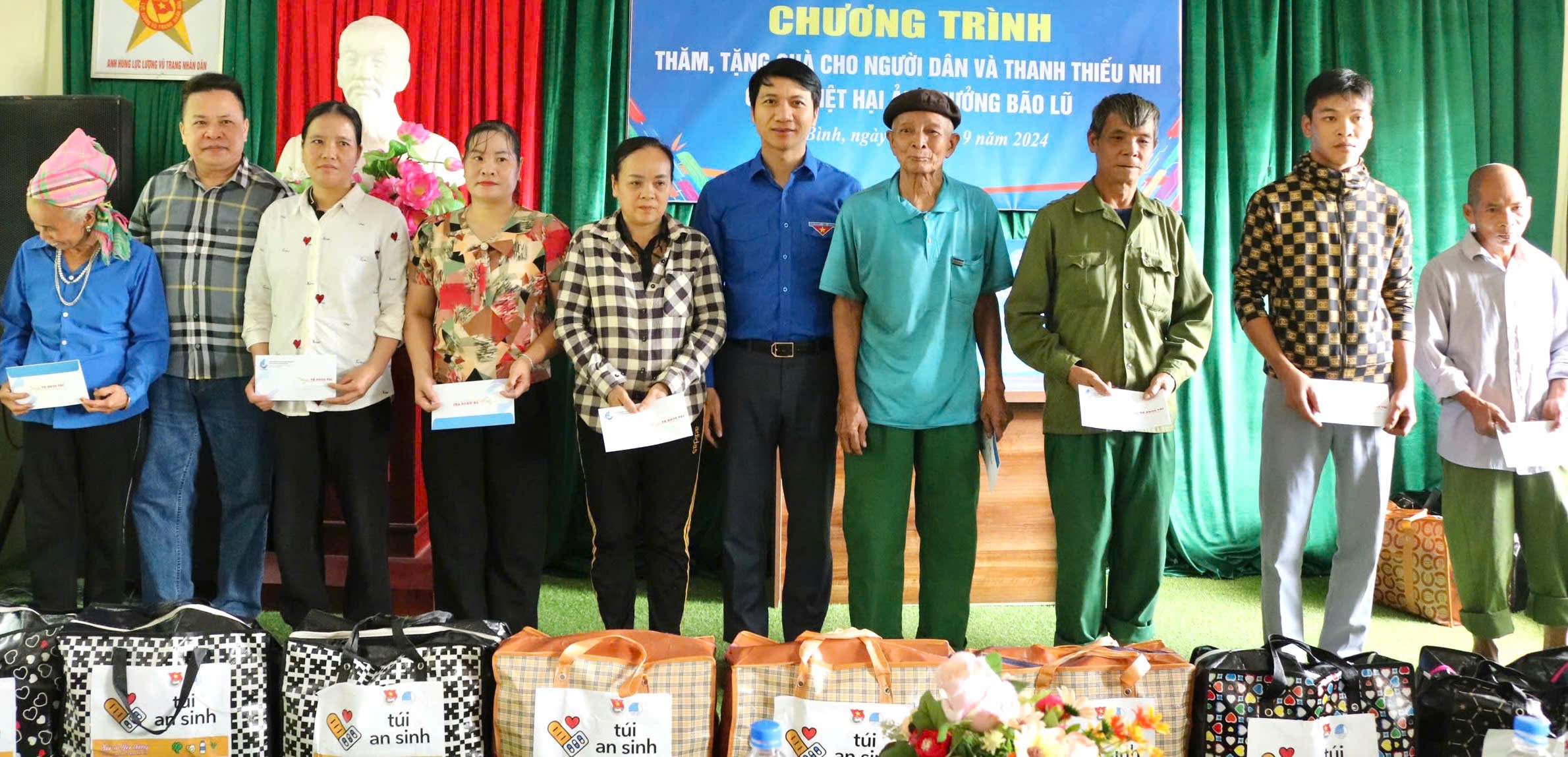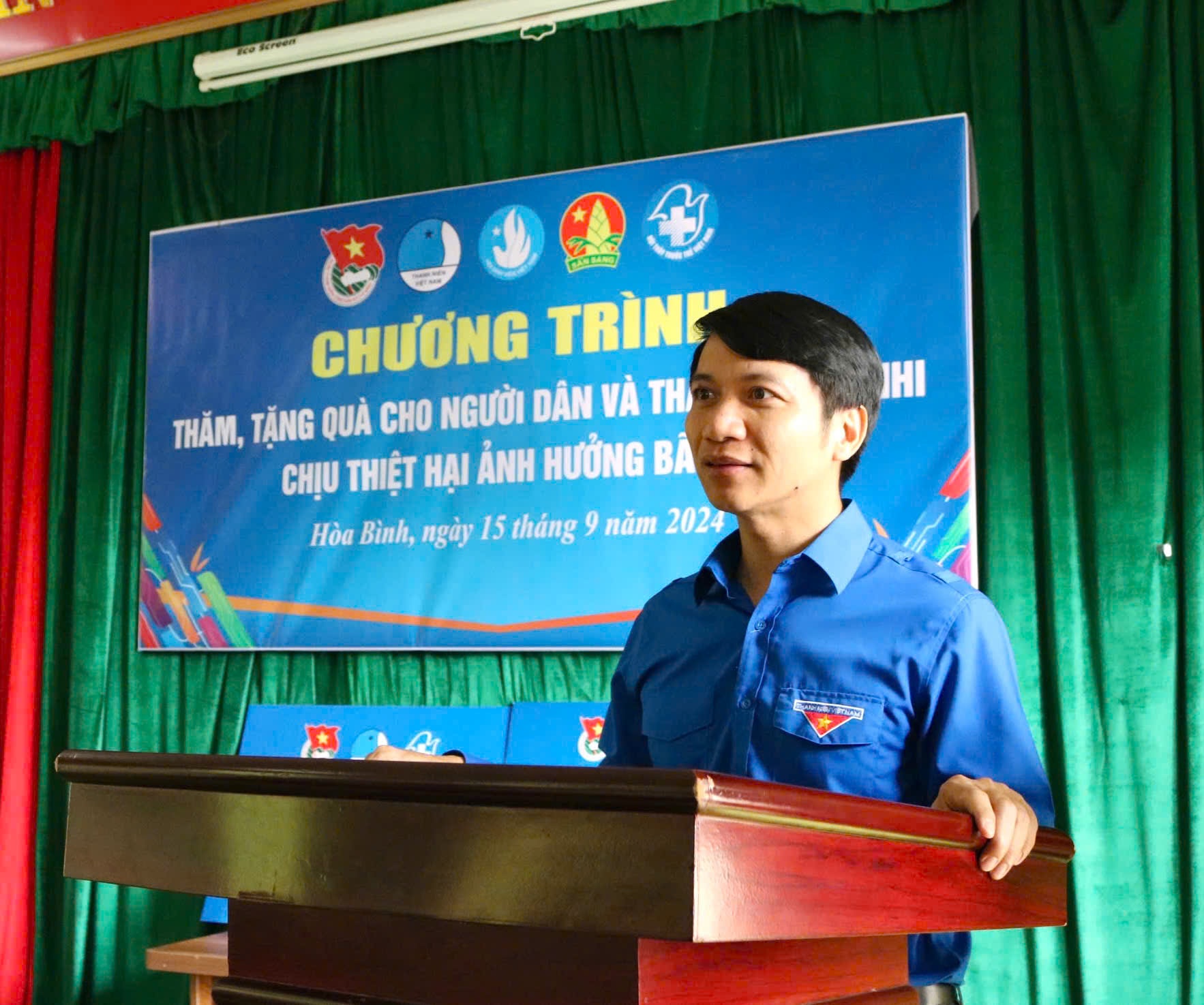 Tại đây, đồng chí Nguyễn Ngọc Lương và đoàn công tác đã trao tặng nguồn lực hỗ trợ của T.Ư Đoàn dành cho Tỉnh đoàn, Hội LHTN Việt Nam, Hội đồng Đội tỉnh Hòa Bình triển khai các hoạt động khắc phục hậu quả của thiên tai cho nhân dân tổng trị giá 620 triệu đồng, gồm: kinh phí hỗ trợ, học bổng cho học sinh; 300 thùng sữa, 200 thùng xúc xích, 100kg Cloramin B và 500 túi thuốc. Cùng đó, anh Nguyễn Ngọc Lương và đoàn công tác trao tặng 26 phần quà (1 túi an sinh và 1 triệu đồng tiền mặt) cho 26 hộ gia đình tại xã Trung Thành.