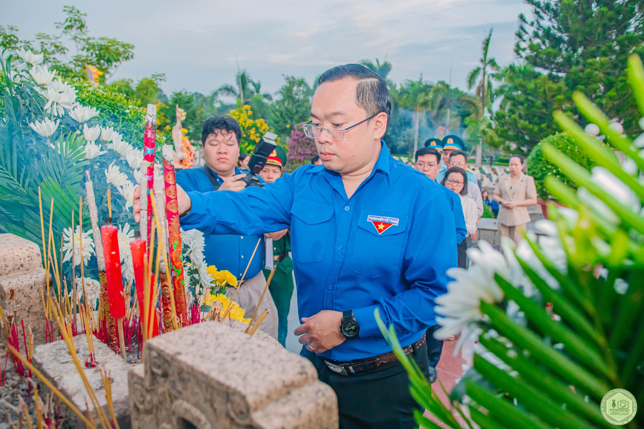 Đồng chí Nguyễn Minh Kiên - Bí thư Tỉnh đoàn dâng hương tại Nghĩa trang Liệt sĩ tỉnh