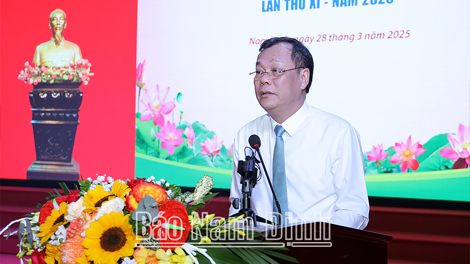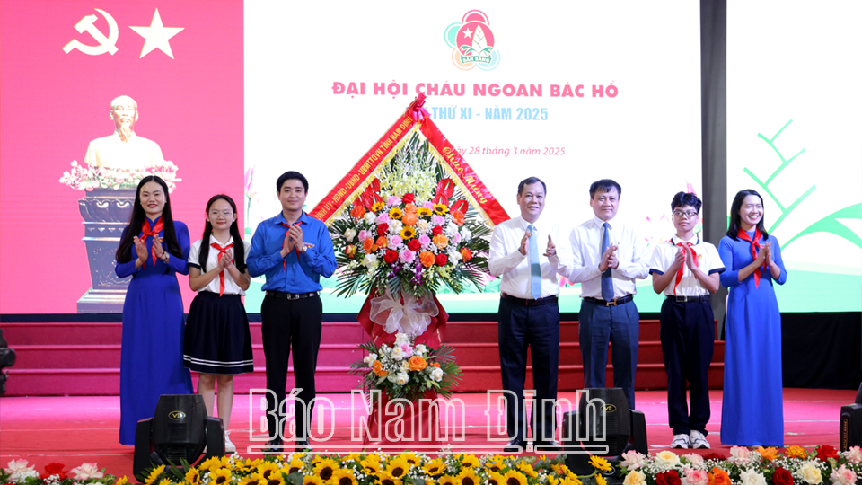 Lãnh đạo Tỉnh uỷ trao tặng lẵng hoa chúc mừng Đại hội Cháu ngoan Bác Hồ tỉnh Nam Định lần thứ XI, năm 2025