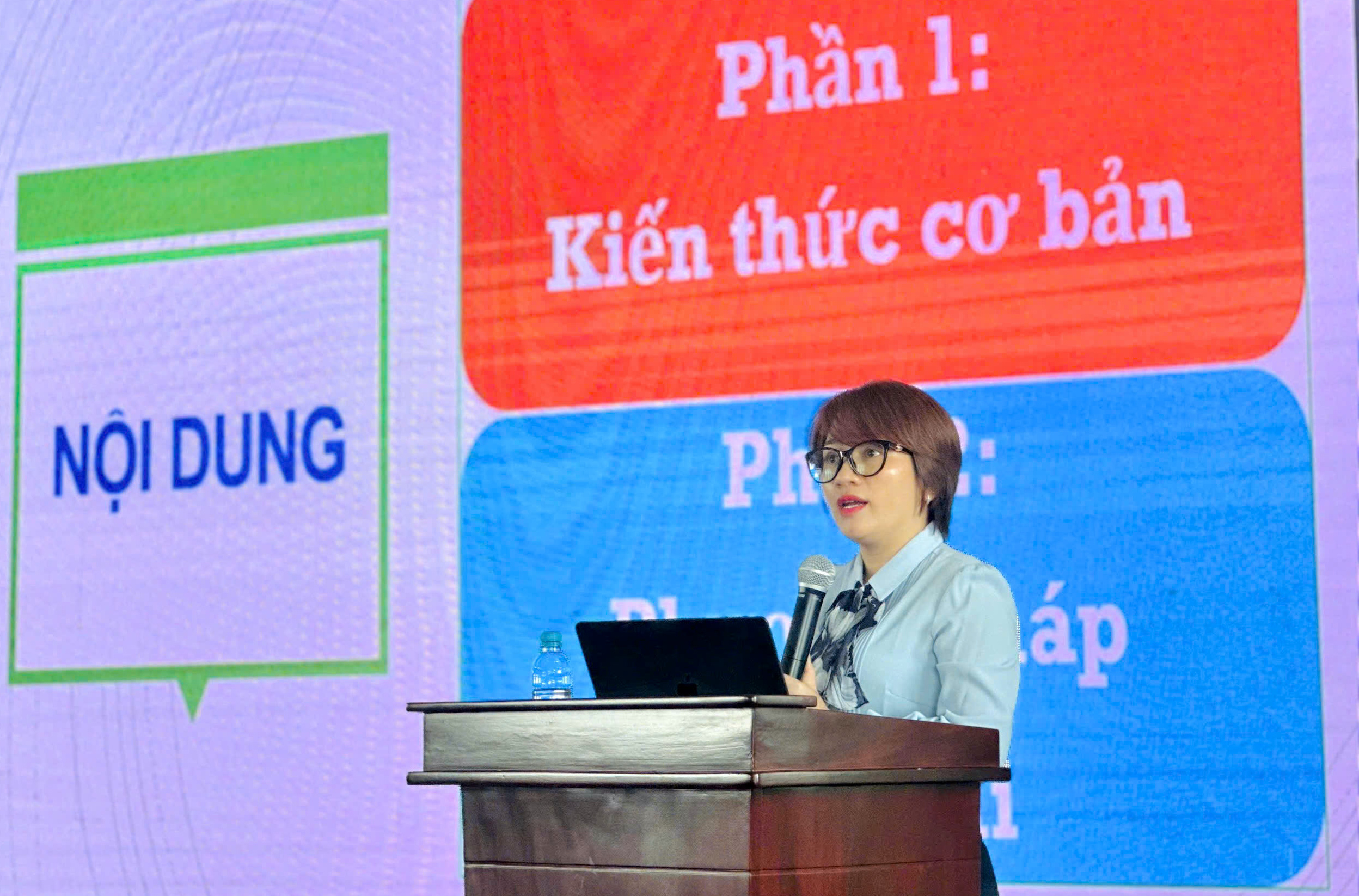 Báo cáo viên Đặng Thị Yến, Giảng viên Trường Chính trị tỉnh hướng dẫn về phương pháp thực hiện viết bài đấu tranh chính luận