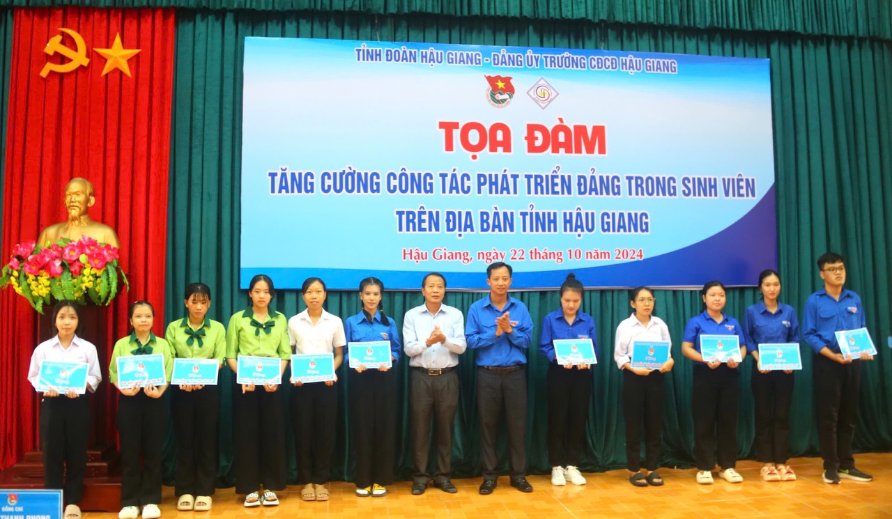 Dịp này, Ban Thường vụ Tỉnh đoàn đã trao tặng 20 suất học bổng “Thắp sáng ước mơ Tuổi trẻ Hậu Giang” cho các bạn sinh viên Trường Cao đẳng cộng đồng Hậu Giang.