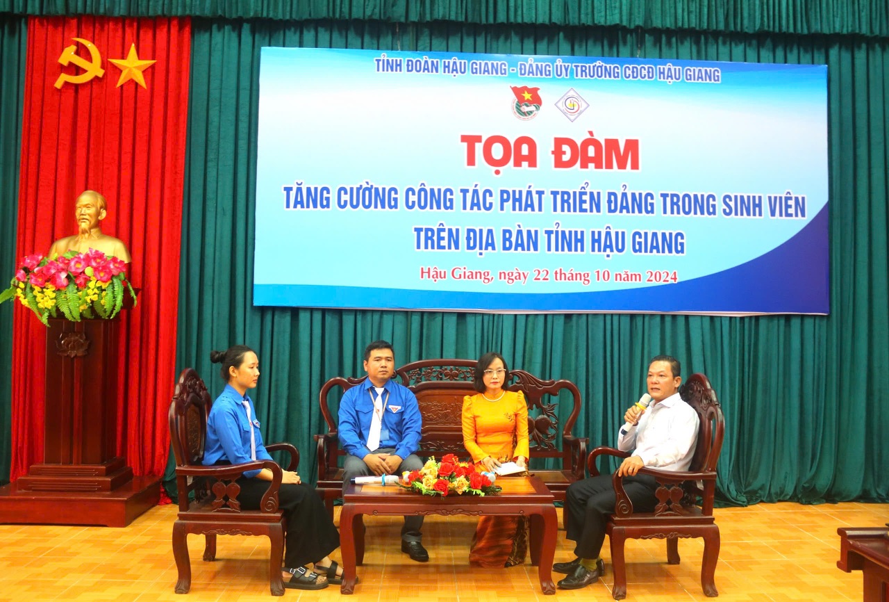 Tại chương trình tọa đàm đại biểu đã được nghe đại diện lãnh đạo Trường Cao đẳng cộng đồng Hậu Giang thông qua báo cáo đề dẫn chương trình Tọa đàm và lắng nghe 04 ý kiến tham luận của quý đại biểu xoay quanh các nội dung: phát huy vai trò công tác tuyên truyền, giáo dục; tăng cường công tác tổ chức xây dựng Đảng; phát huy vai trò của Đoàn Thanh niên Cộng sản Hồ Chí Minh trong tham mưu thực hiện công tác phát triển Đảng; các giải pháp thực hiện tăng cường công tác phát triển Đảng trong sinh viên tại Trường Cao đẳng Cộng đồng Hậu Giang.