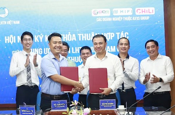 Đồng chí Nguyễn Hải Minh - Phó Chủ tịch thường trực Hội LHTN Việt Nam; đồng chí Lê Hải Bình - Chủ tịch AXYS Group. Cùng đại diện công ty CP Mắt bão, công ty CP Chili, công ty cổ phần ODS thuộc AXYS Group chủ trì hội ghị