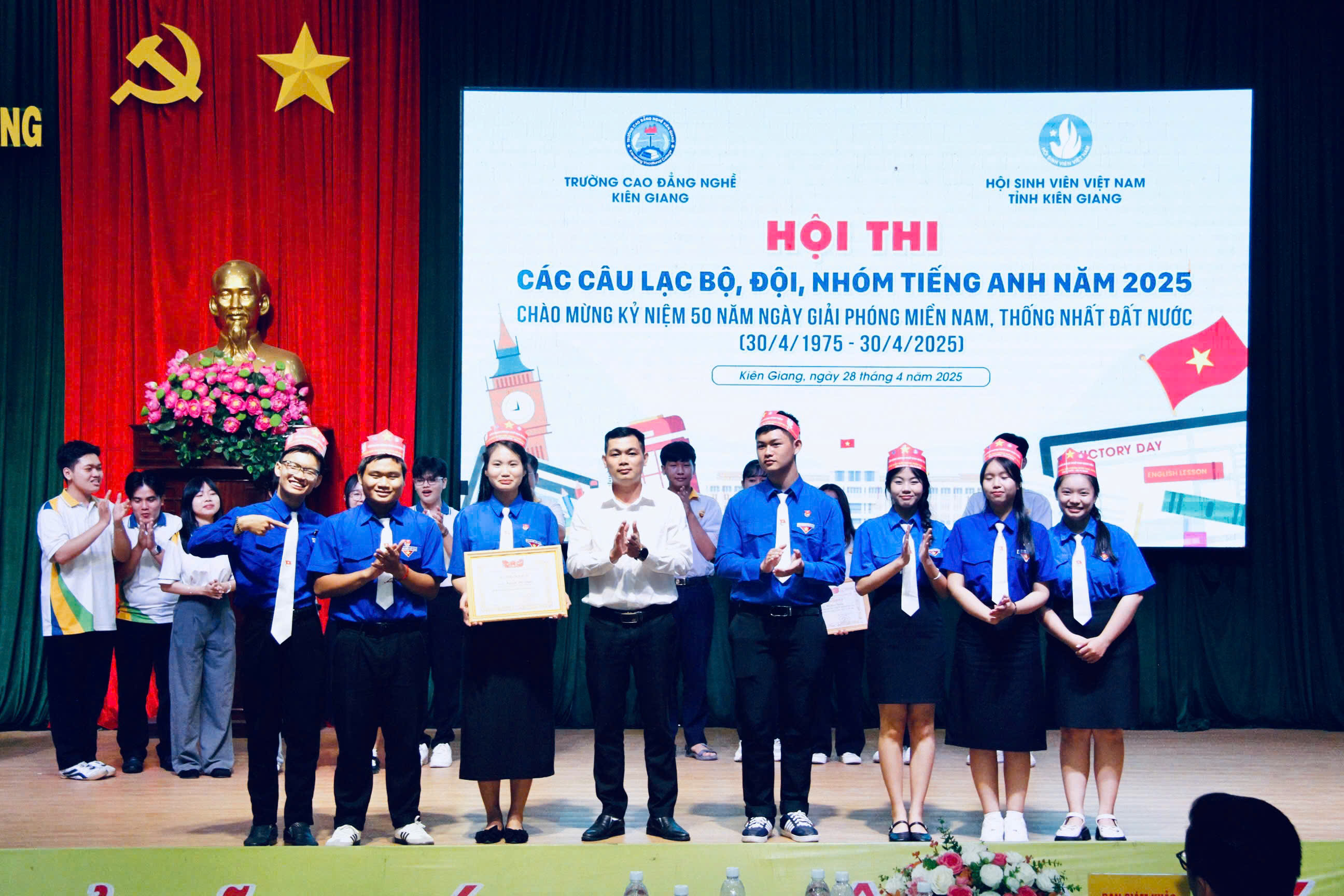 Kết thúc Hội thi, Ban Tổ chức đã trao 01 giải nhất, 01 giải nhì, 01 giải ba và 03 giải khuyến khích cho các đội tham gia Hội thi. Hội sinh viên Trường Đại học Kiên Giang đã xuất sắc đạt giải nhất Hội thi Câu lạc bộ, Đội nhóm tiếng Anh tỉnh Kiên Giang năm 2025.