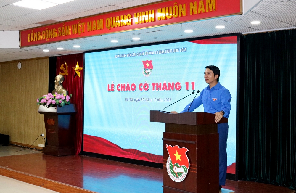 Phát biểu tại Lễ chào cờ, đồng chí Nguyễn Ngọc Lương - Bí thư thường trực T.Ư Đoàn, Chủ tịch Hội LHTN Việt Nam biểu dương các ban, đơn vị đã nỗ lực, cố gắng để hoàn thành nhiệm vụ công tác trong tháng 10.