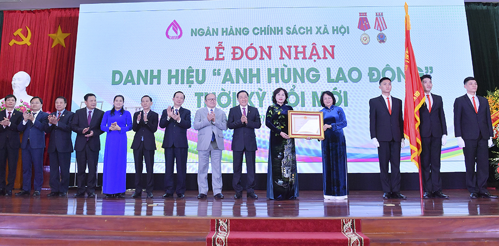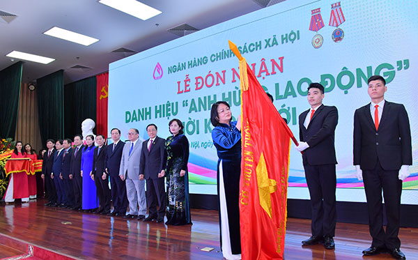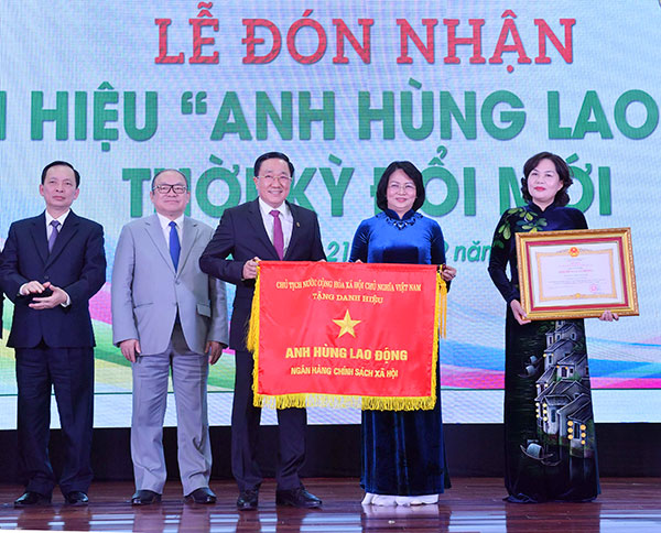 Phó Chủ tịch nước Đặng Thị Ngọc Thịnh trao Cờ “Anh hùng lao động” thời kỳ đổi mới cho NHCSXH