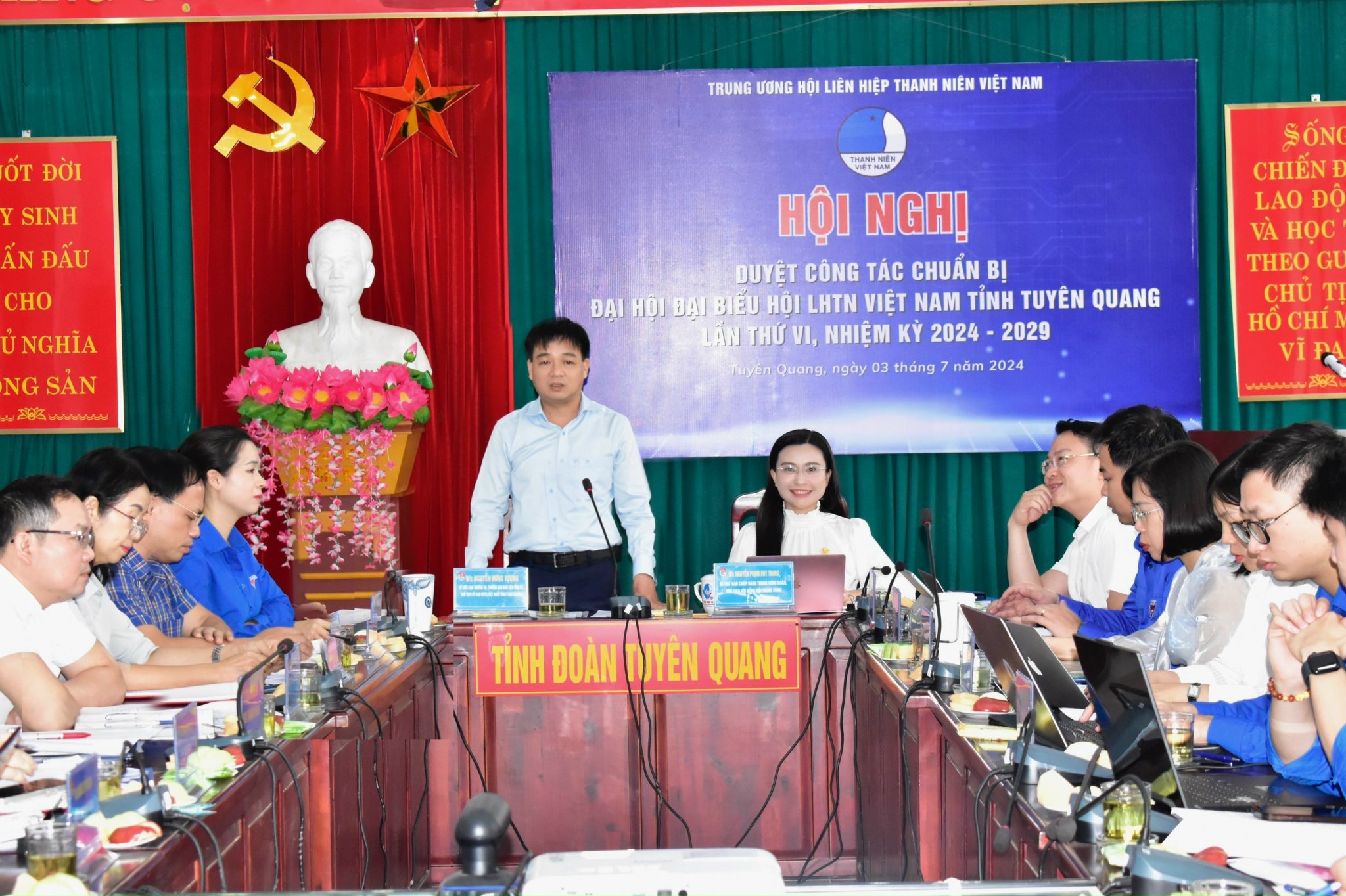 Phát biểu kết luận hội nghị, đồng chí Nguyễn Phạm Duy Trang biểu dương, đánh giá cao Tỉnh đoàn, Hội LHTN tỉnh Tuyên Quang mạnh dạn đăng cai đại hội điểm và thống nhất thời gian tổ chức Đại hội trong 02 ngày 13, 14/7.
