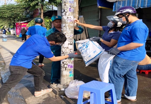 Thành Đoàn Thuận An thực hiện việc dọn rác, phát hoang bụi rậm, cỏ, xé bảng quảng cáo trái phép tại các trụ điện; Huyện Đoàn Bàu Bàng dọn dẹp vệ sinh tại cơ quan, trường học, phát quang cây cối, xóa các điểm đen ô nhiễm.