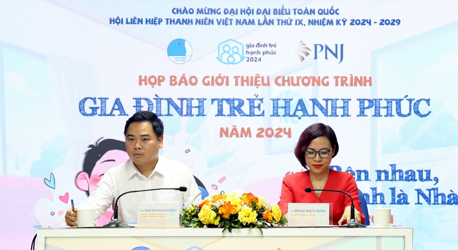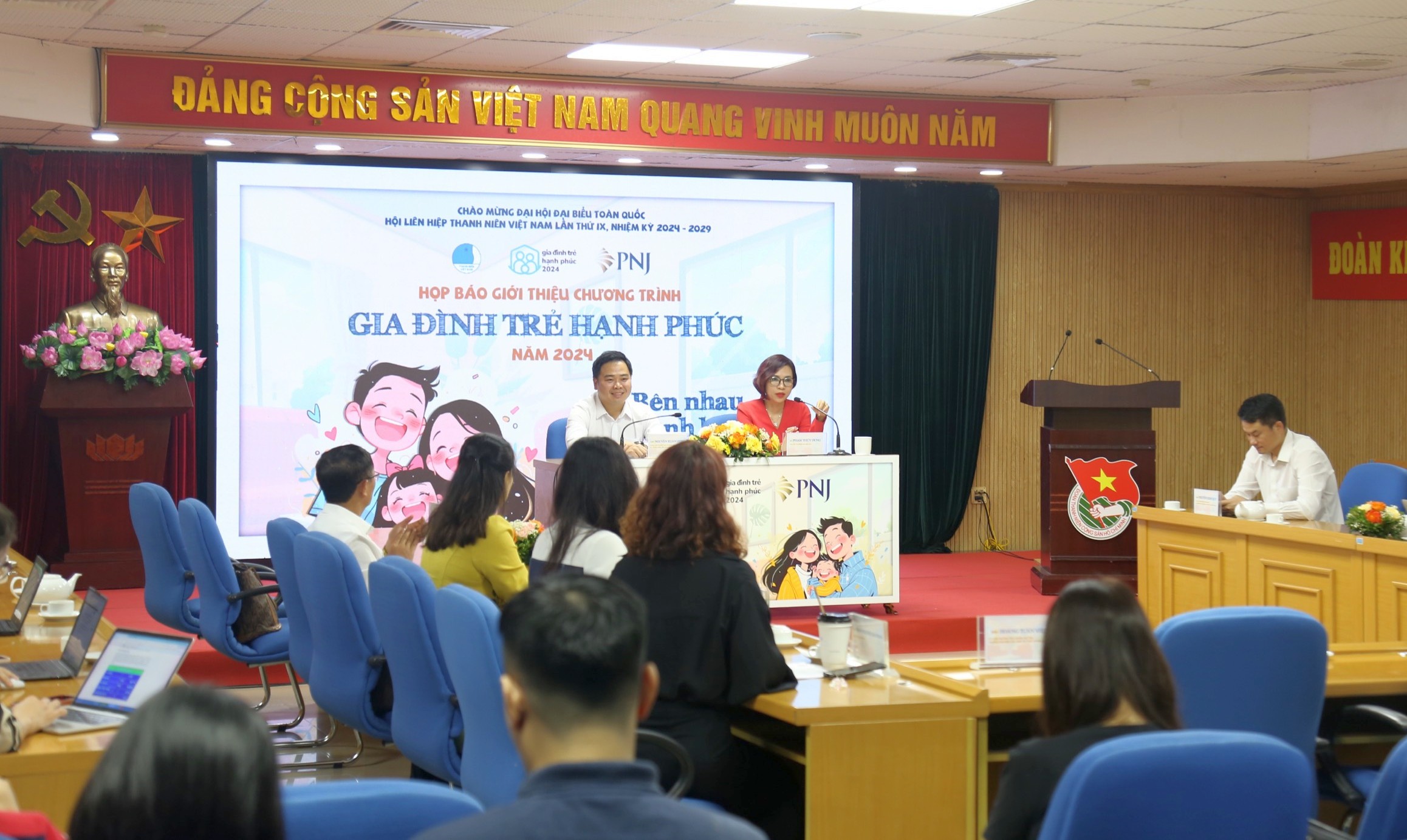 ĐTN: Sáng 28/6, tại Hà Nội, T.Ư Hội Liên hiệp thanh niên Việt Nam phối hợp với Công ty CP Vàng bạc đá quý Phú Nhuận (PNJ) tổ chức họp báo giới thiệu chương trình Xây dựng gia đình trẻ hạnh phúc và Ngày hội “Gia đình trẻ hạnh phúc” năm 2024 với chủ đề “Bên nhau, mình là Nhà”.