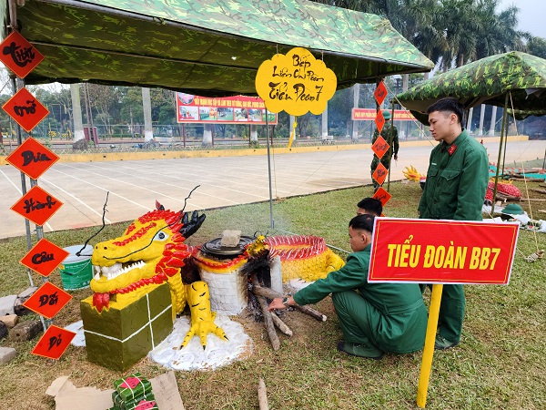 Trung tá Nguyễn Hữu Thọ cho biết thêm: Điểm nhấn của Chương trình năm nay, đó chính là các đội đã chuẩn bị rất chu đáo, công phu về các nguyên, vật liệu cho gói bánh, những chiếc bánh chưng bảo đảm đẹp, đúng đủ theo chế độ, tiêu chuẩn cúng như kích thước. Việc chuẩn bị bếp và đắp linh vật rất sinh động. Tinh thần và khí thế tham gia của bộ đội và đoàn viên thanh niên địa phương rất sôi nổi, đầy hào hứng.