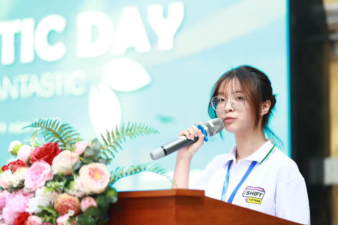Đồng thời sau khi được nâng cao ý thức bảo vệ môi trường, chúng em hy vọng thông qua Anti Plastic Day, hội trại có thể lan toả thông điệp sống xanh đến không chỉ riêng cộng đồng học sinh, sinh viên mà còn có thể lan toả đến cả cộng đồng dân cư trong địa bàn quận nói riêng và thành phố nói chung từ đó mong mọi người cùng chung tay giảm thiểu rác thải nhựa dùng một lần, góp phần tạo nên môi trường xanh - sạch - đẹp quanh ta.”